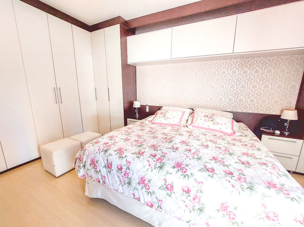 Localizada no Bolsão Parque das Flores, 191 m², sobrado com 3 quartos com armários, sendo uma suíte e banheiro social na parte superior.